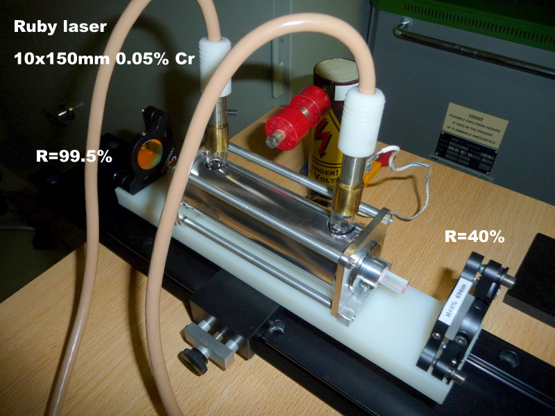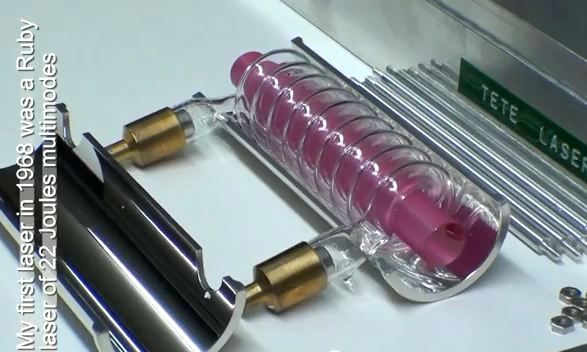 Laser à rubis pompé par un tube flash hélicoïdal de 7 kJ sortie 22 J en 2 ms !