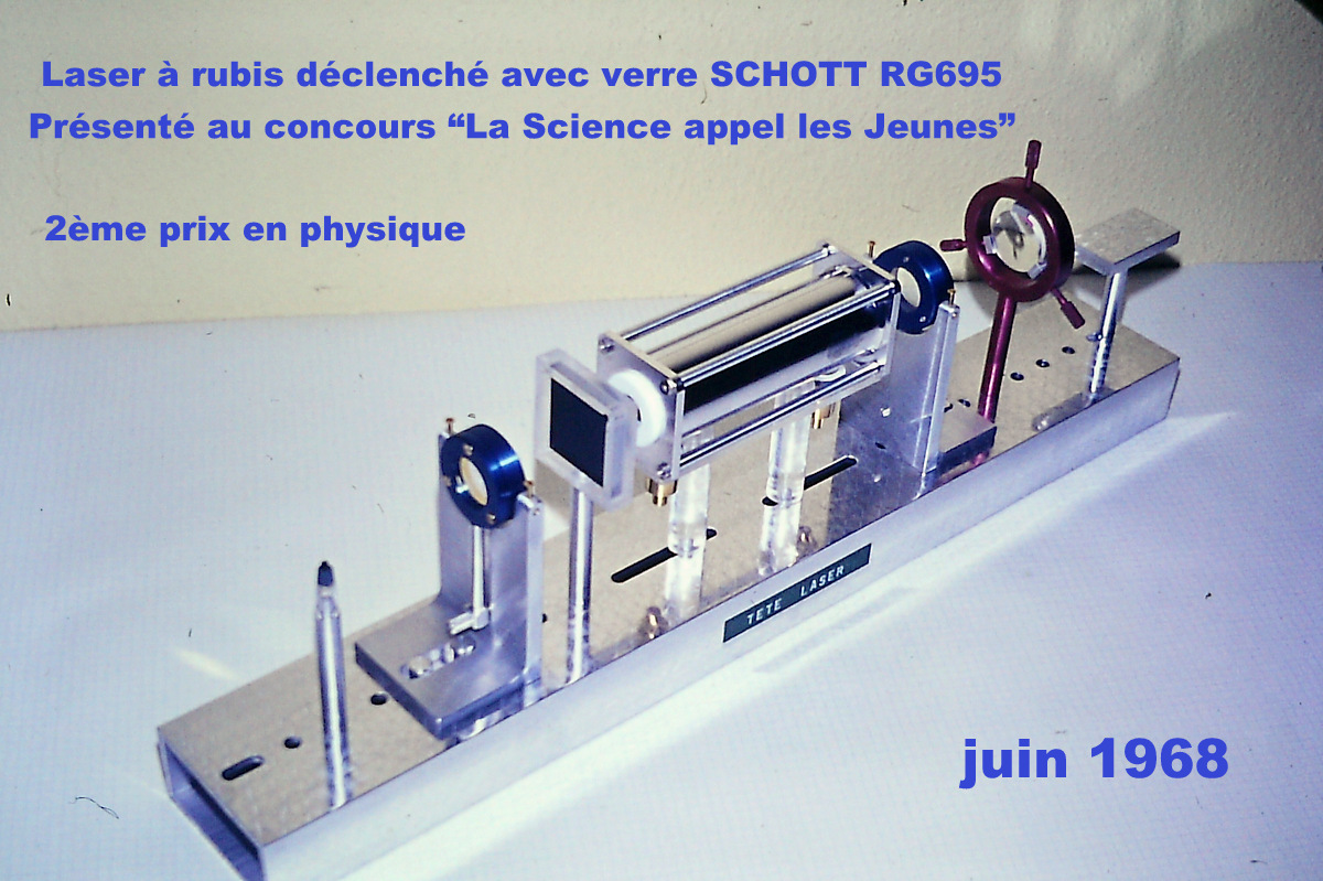 J'ai construit ce laser en 1968 avec lequel j'ai participé au concours "La Science Appelle les Jeunes" et obtenu un 2ème prix en physique avec un voyage d'étude en Angleterre.