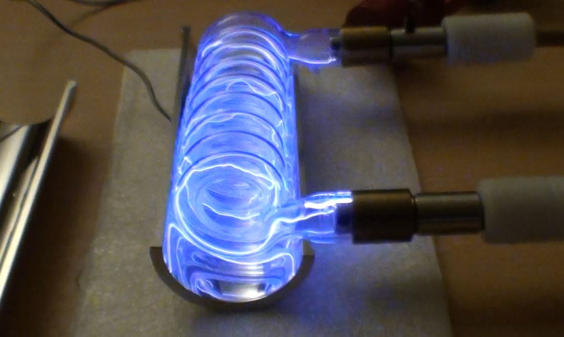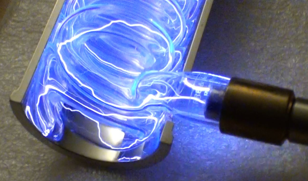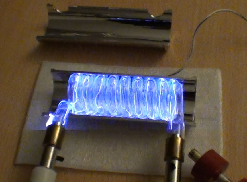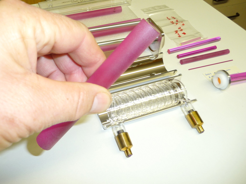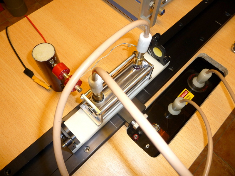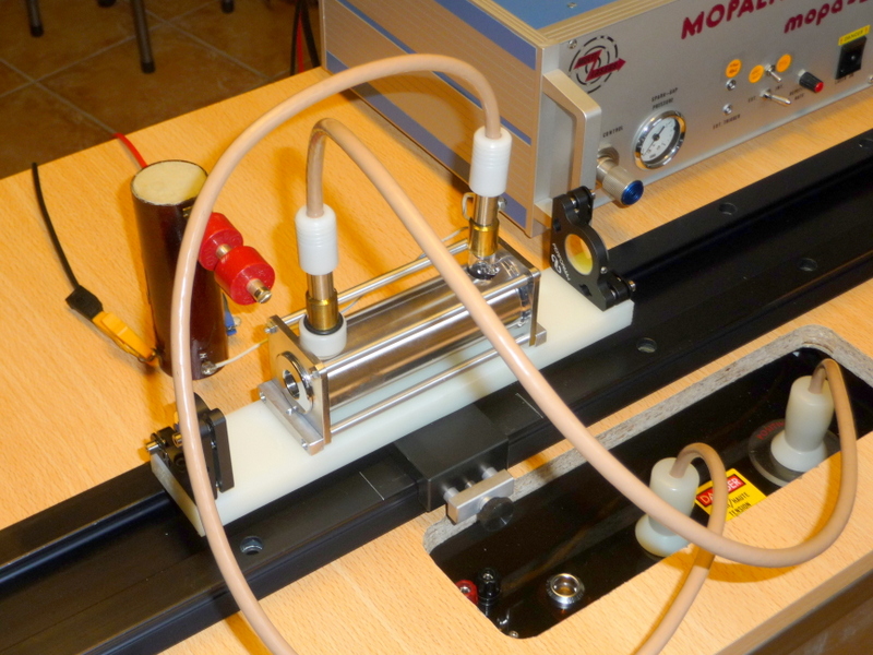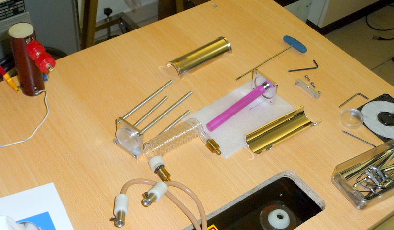 Démontage de la cavité pour tester le "pulse trigger" sur le tube flash avec une bobine TRIGGER de 40kV en 10 microsecondes.