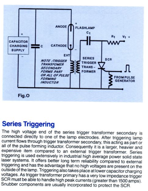 l'on peut brancher en série ou en parallèle. Je vais utiliser un système "serie triggering" ce qui simplifie le montage et de plus j'ai un transfo série. Dans le même chariot j'ai également une batterie de condensateurs électrolytique de 10kJ sous 1350V. Les