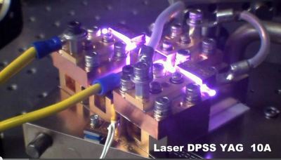 Ce laser se compose d'un barreau de Cr:Nd:YAG de 3mm de diamètre et 65mm de long pompé par 3 diodes lasers de 40W. Le résonnateur est formé d'un miroir Rmax et d'un miroir de sortie R95%.