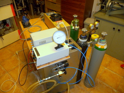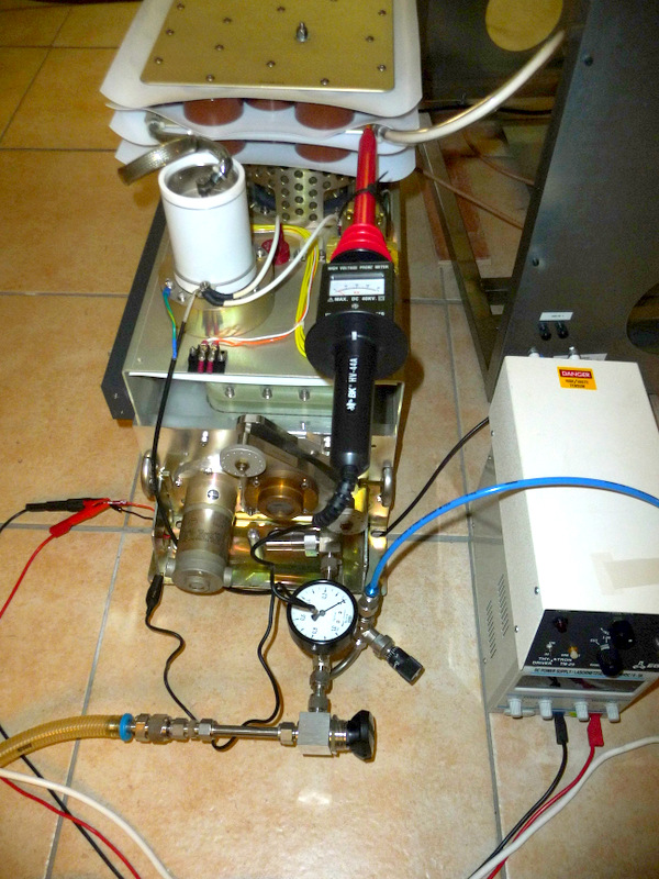 Premiers tests du laser avec un mélange de 8He 1N2 1CO2 avant le montage dans le chariot
