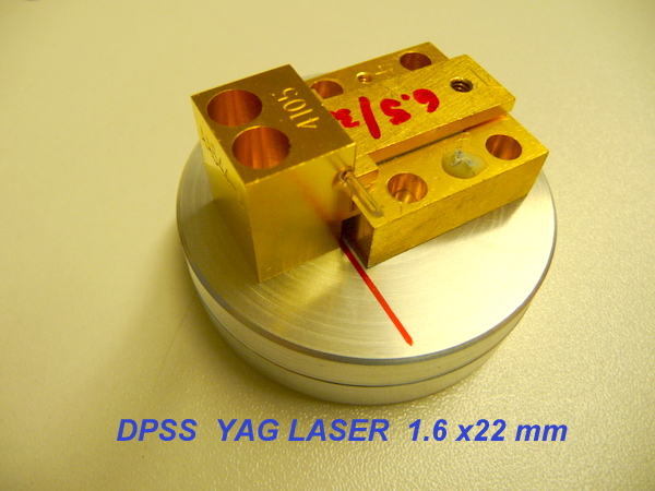 barreau Nd:YAG de 1.6mm x 22 mm co-dopé à 0.5% Nd et 0.5% Cr. La diode pompe est une