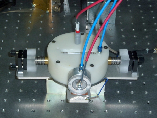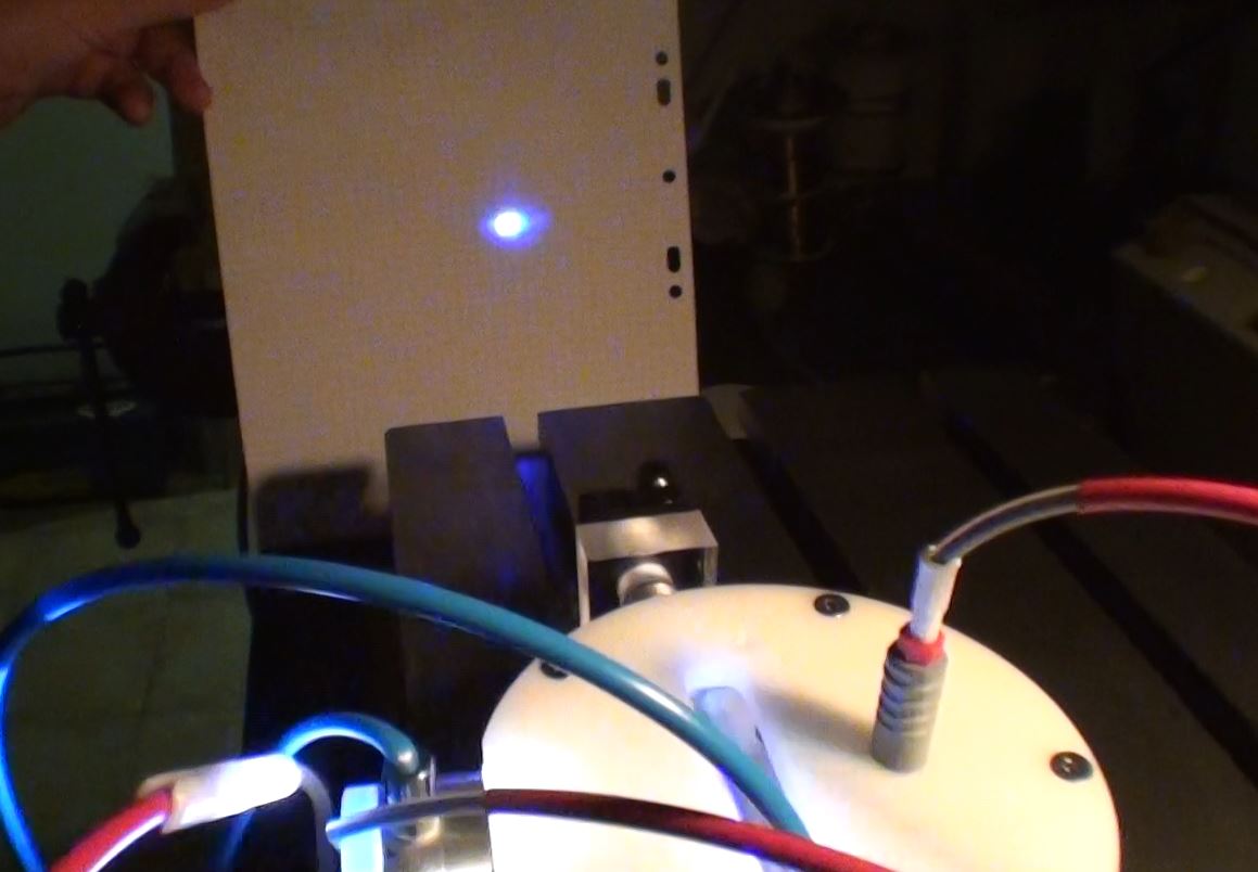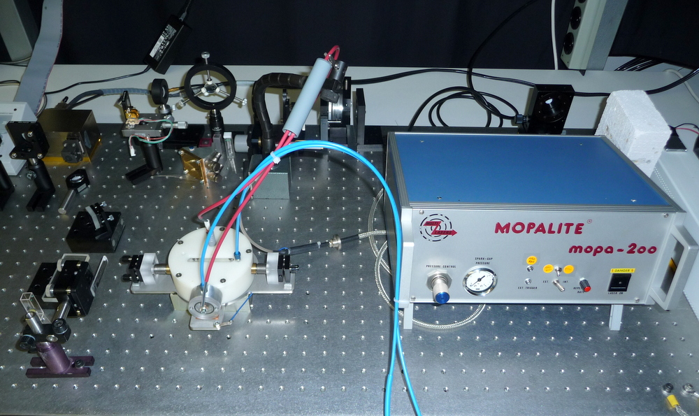 Les électrodes de décharge en aluminium de 9mm d'épaisseur sont réglable en distance pour la décharge transversale et en angle pour crée un décharge synchronisée avec l'émission super radiante.