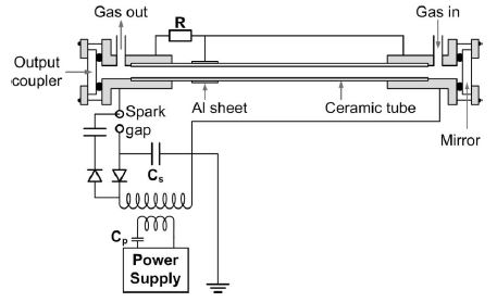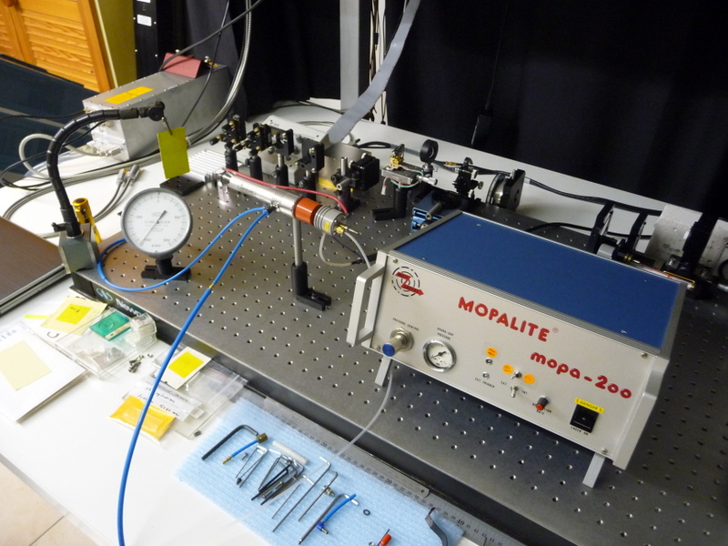 L'énergie de sortie est de 2 micro joule avec une durée de pulse de 20ns soit une puissance crête de 100W ce qui est loin des lasers TEA N2 sortant 1MW !