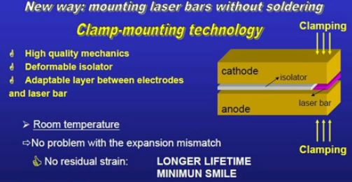 Il existe une société qui assemble les barrettes laser sans soudure par simple contact entre l'anode et la cathode. Cette société Espagnol s'appelle MONOCROM . Elle à cédé des Licences à plusieurs sociétés fabricant des diodes lasers.