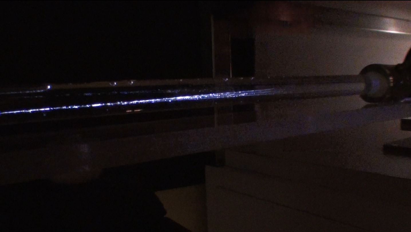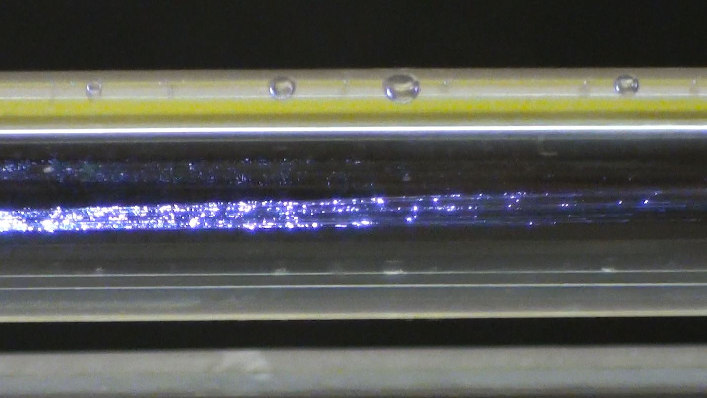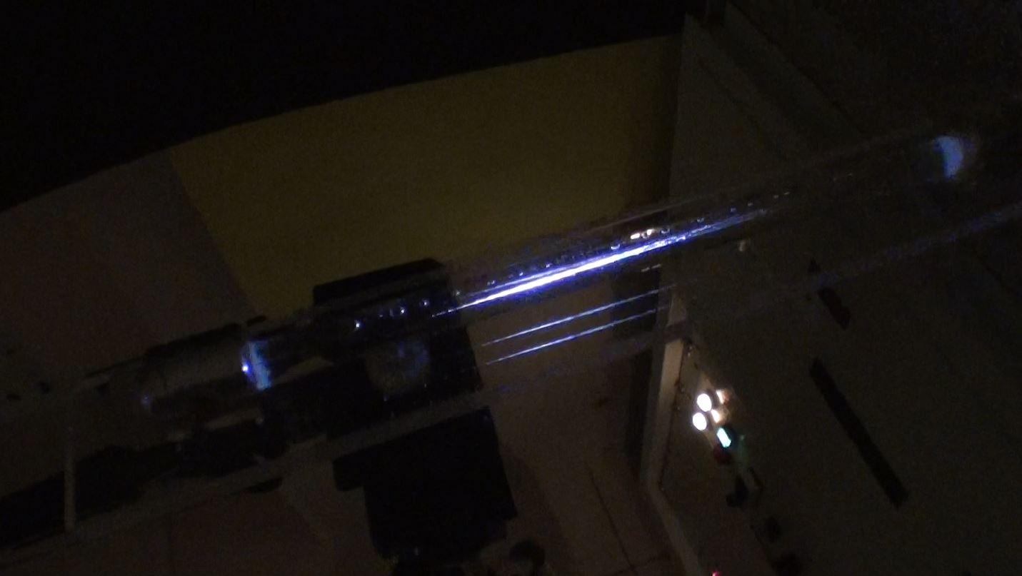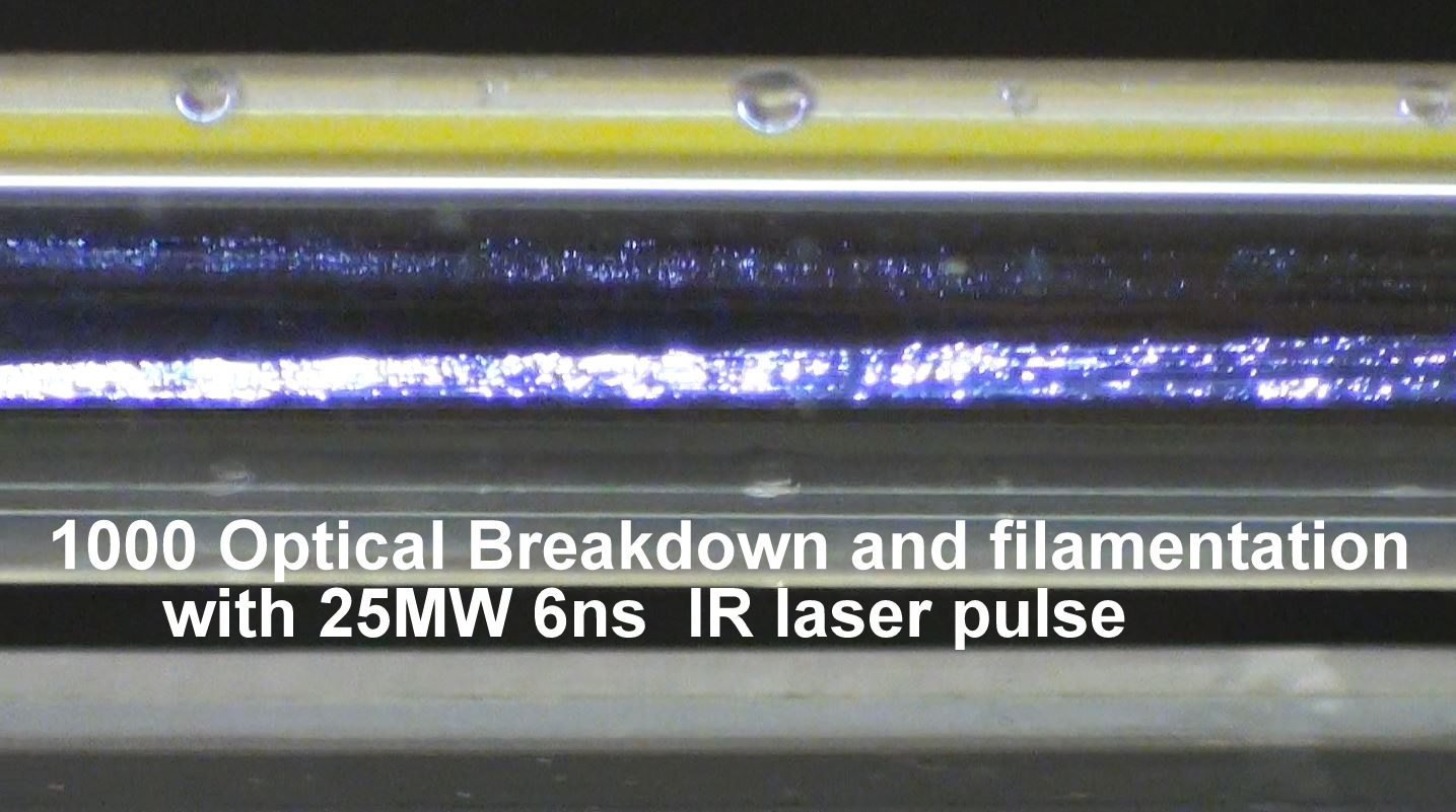 Ici j'obtiens environ un millier de claquages diélectriques en focalisant un pulse infrarouge de 25MW en 6ns dans du trichlorotrifluoroethane liquide. La lentille à une focale de 300mm et cela produit un millier de micro boules de plasma sur une longueur de 200 à 250mm.