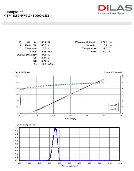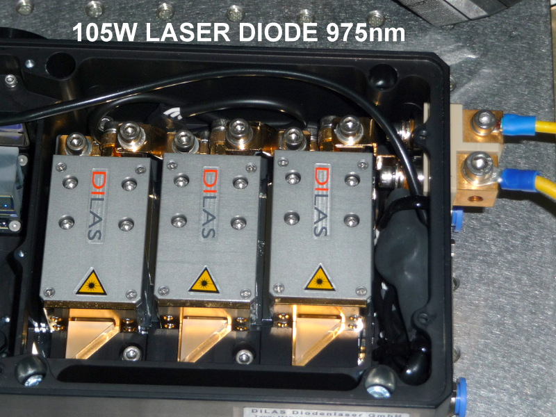 Elle émet à 975nm ce qui correspond à la longueur d'onde pour le pompage d'une fibre Ytterbium.