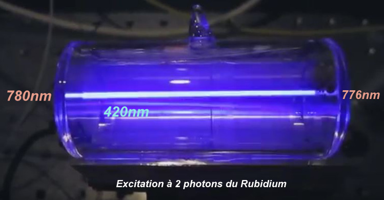L'expérience consiste à produire une absorption à 2 photons dans une enceinte contenant un gaz de Rubidium.