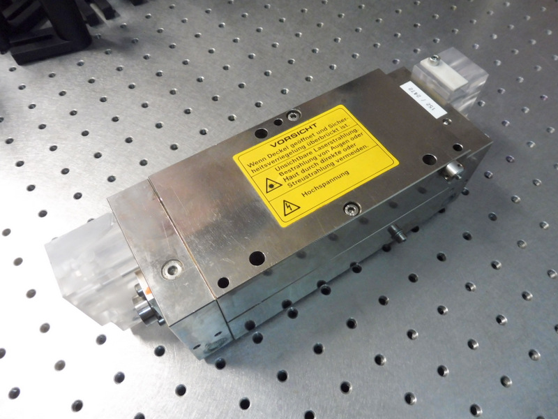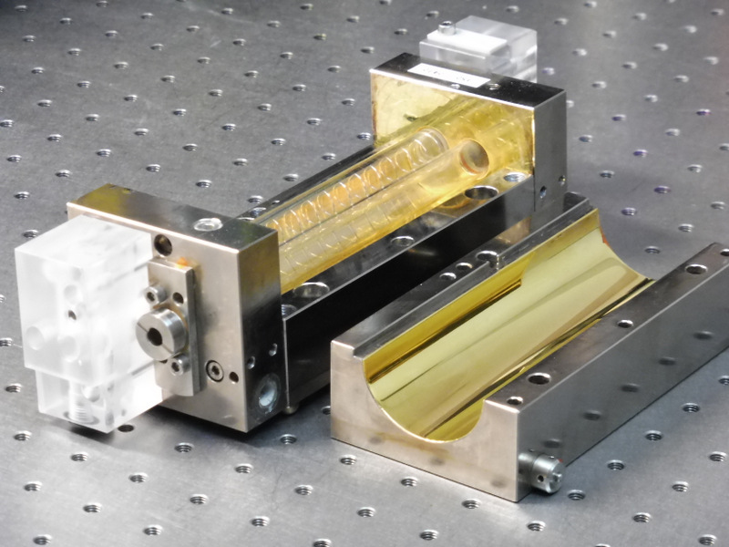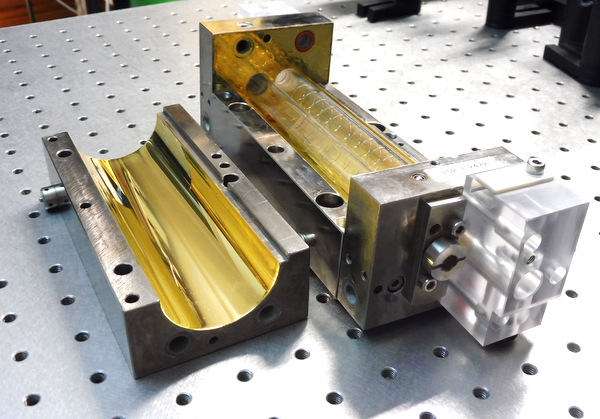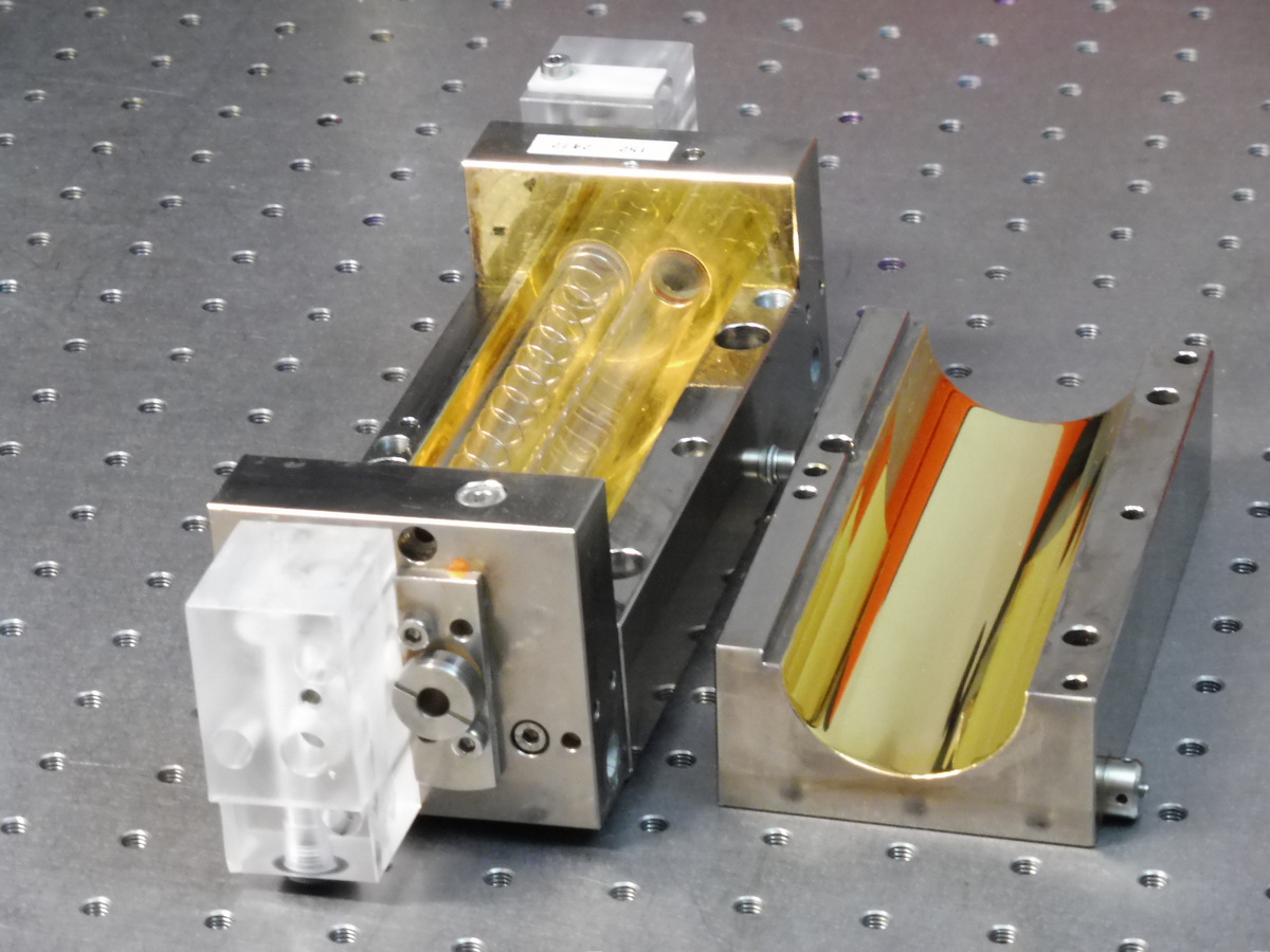 Cette cavité issue d'un laser YAG pulsé de soudage de la société LASAG va être équipée d'un barreau de verre dopé au Néodyme avec un tube flash.