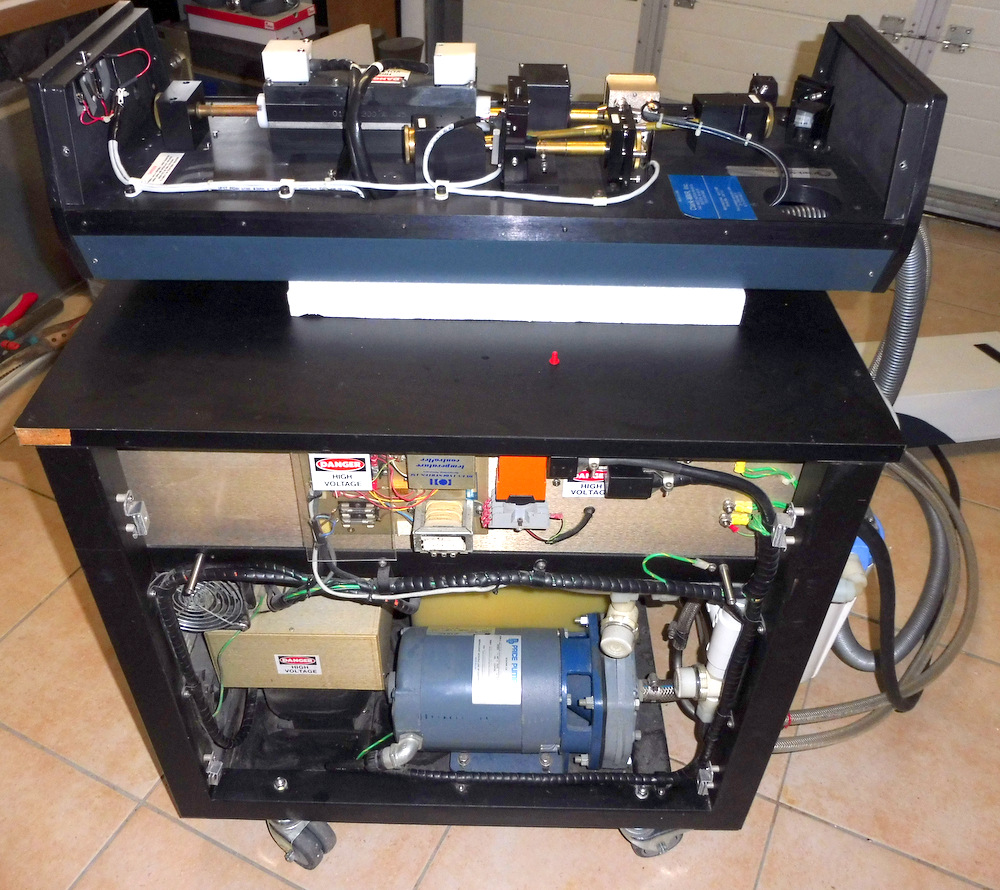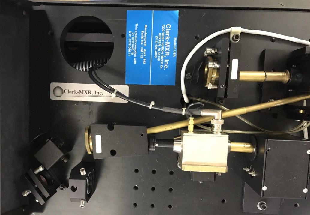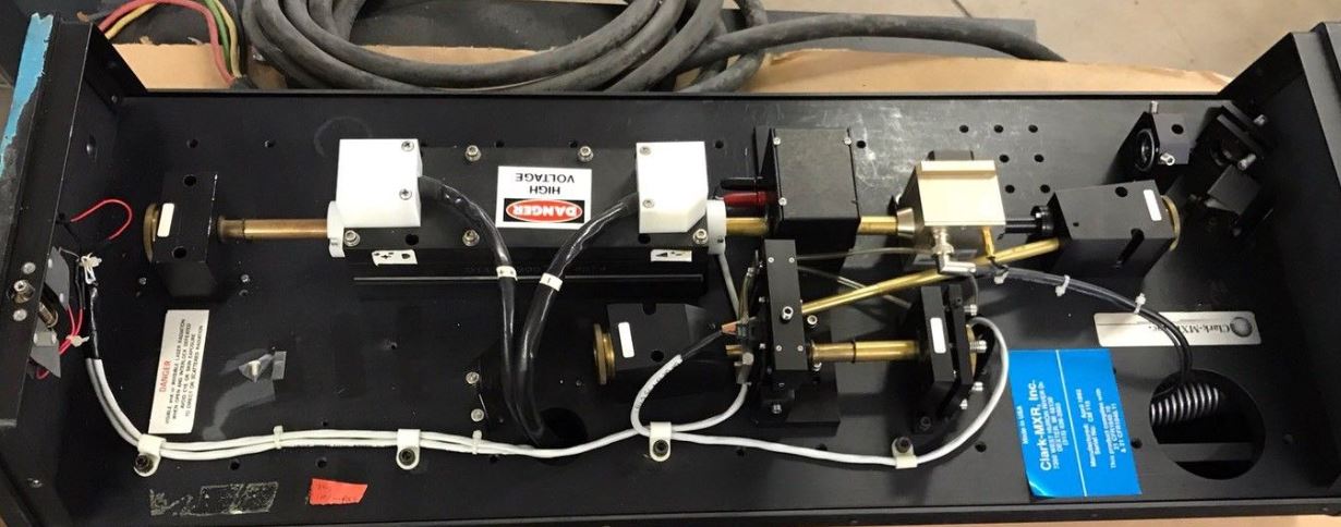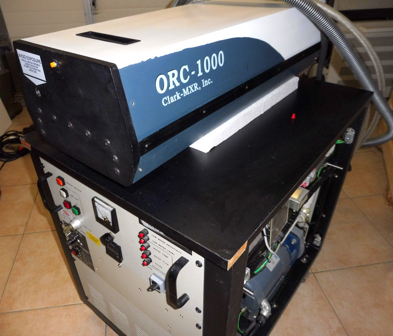 PAGE EN CONSTRUCTION Le laser CLARK ORC-1000 va me servir au pompage d'un préamplificateur femtoseconde titane saphire. Il se compose d'un cristal Nd:YAG pompé par une lampe à krypton de 2kW continu, d'un AOM permettant de faire du Q-switching à une fréquence de 1kHz. Puis d'un doubleur de fréquence pour sortir des pulse de 120ns et 20mJ à 1kHz !