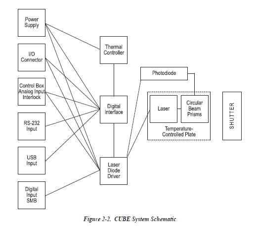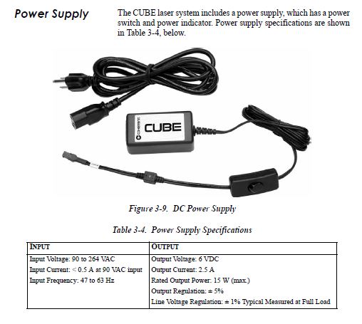 mm. Chaque système laser CUBE comprend une tête de laser, une alimentation, un