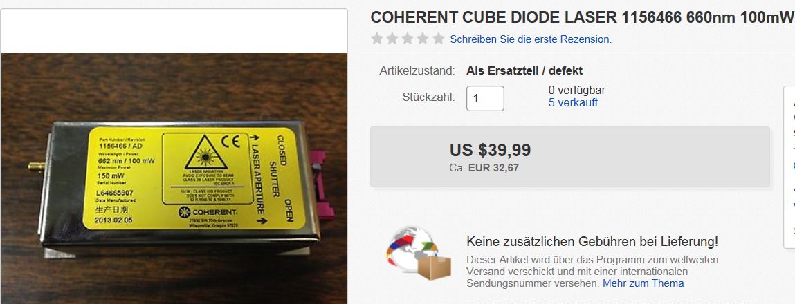 conditionnement, pour une valeur optimale. Ce laser émet à 662nm jusqu'à 150mW monomode et est modulable jusqu'à 350kHz. Connection: (pin1 & 9 jump) (pin11 +6VDC) (pin13 masse)