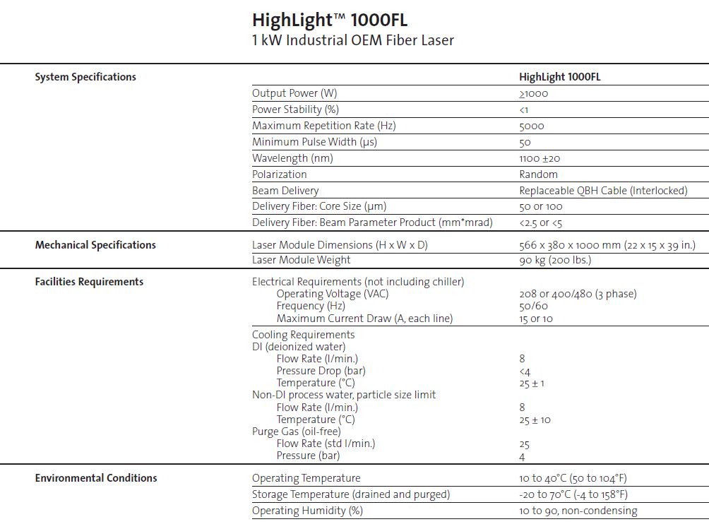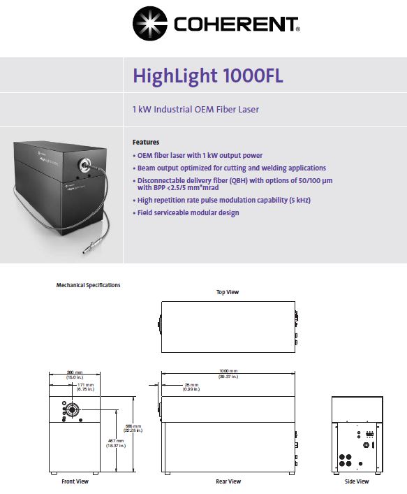 COHERENT High Light FL1000 1kW fiber laser