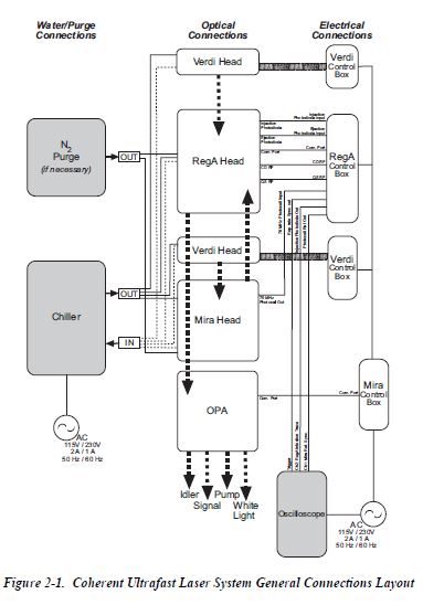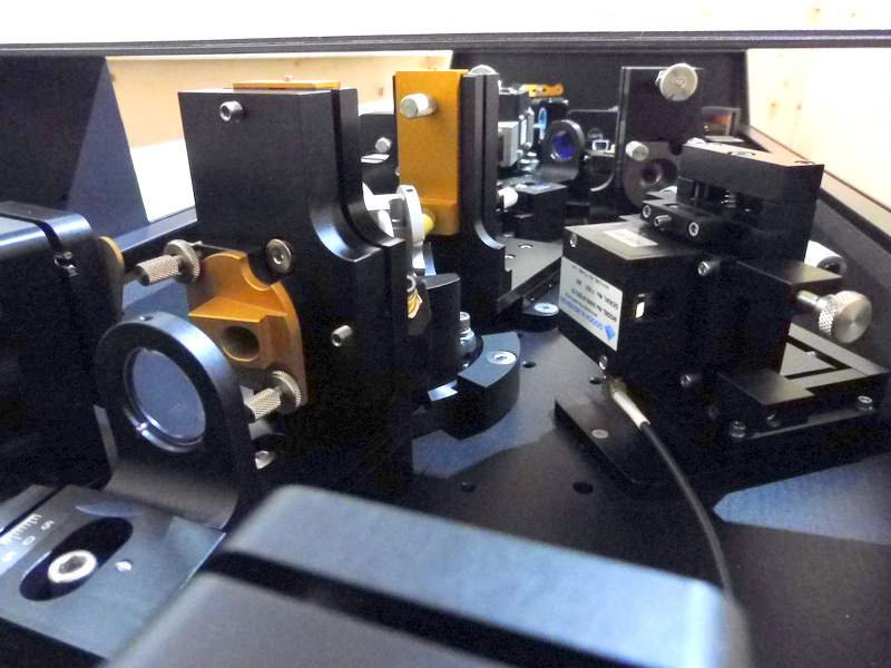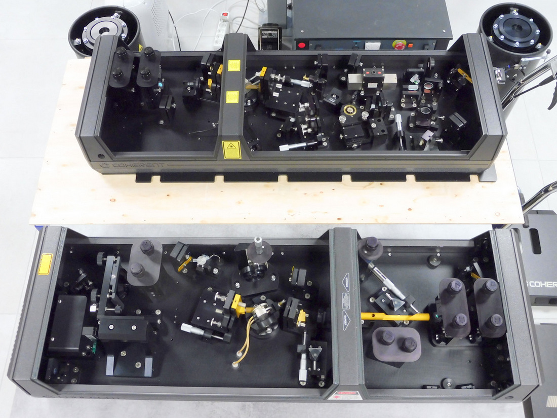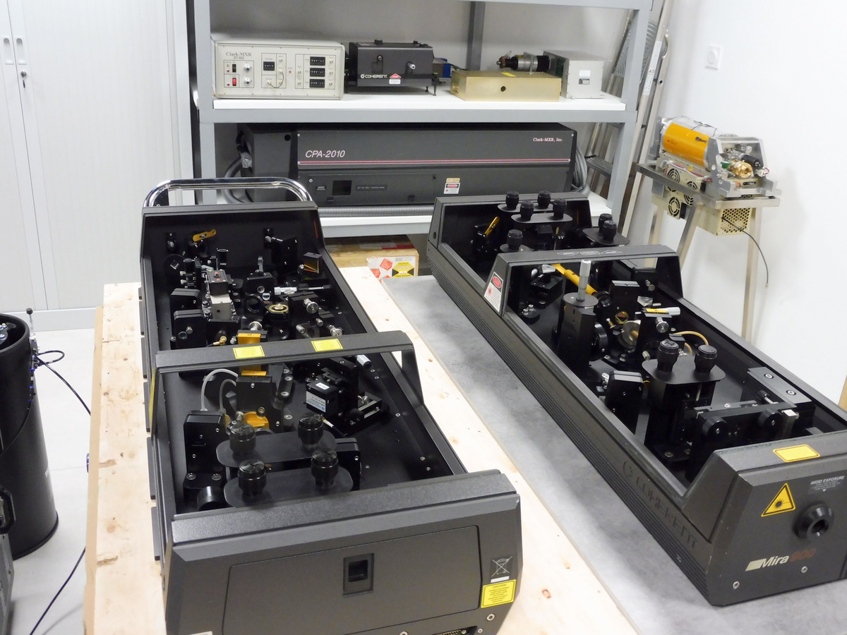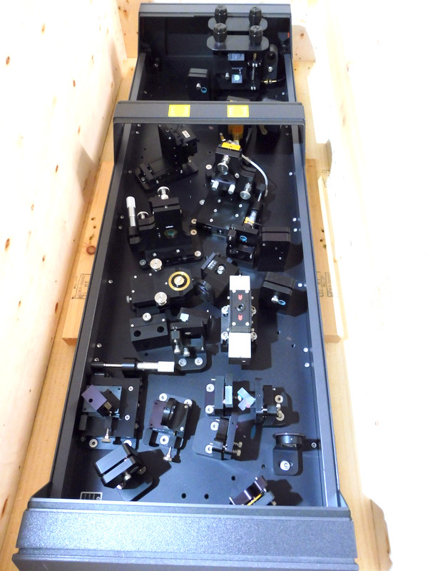 PAGE EN CONSTRUCTION LeRegA9000 est un amplificateur régénératif pompé par un laser continu de 12W @ 532nm. Il permet d'amplifier par un facteur 1000 l'énergie d'un Laser MIRA900. Le RegA9000 se compose d'un cristal Ti:S ainsi que d'un étireur et compresseur ainsi que d'un module de génération de lumière blanche. L'intensité de sortie est de 33MW @ 800nm durant 150fs à 250 kHz soit 1.5W moyen (6 micro-joules/pulse). Il y a également une sortie en lumière blanche ! Un module électronique permet de synchronisé la cellule de Pockel avec le faisceau venant du MIRA900 ainsi que de changer la fréquence de répétition.