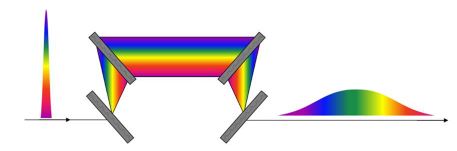 Un laser Verdi 12W continu pompe le cristal Titane-saphire (TS) au moyen de la lentille (L1). Les pulses à amplifier qui sont issue du laser MIRA900 de 6nJ à 80MHz arrive à travers les miroirs (M2 etM3) puis sont dirigés sur un étireur temporel composé des miroirs (CM1-CM2) et d'un réseau de diffraction (DG) ainsi que de la lentille (L3). Le pulse étiré temporellement est dirigé vers une cellule de Pockel's (QS) qui va uniquement laisser passé un pulse sur 320 pulses (à 250kHz). Ce pulse va être envoyé dans le cristal Titane-saphire (TS) pour être amplifier durant ses 2 passages pour obtenir une énergie 1000 fois supérieur ! Une fois amplifier il est envoyer dans l'étireur mais en sens inverse alors il devient un compresseur de pulse.