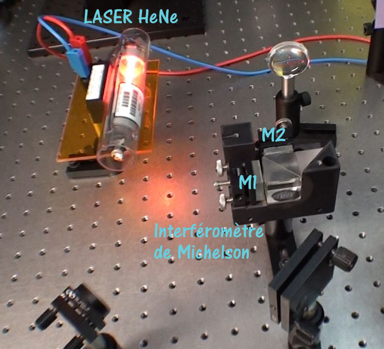 L'expérience consiste à chauffé pendant quelques secondes un des bras de l'interféromètre de Michelson pour voir des franges d'interférence défilés dans un sens pour au refroidissement dans l'autre sens!