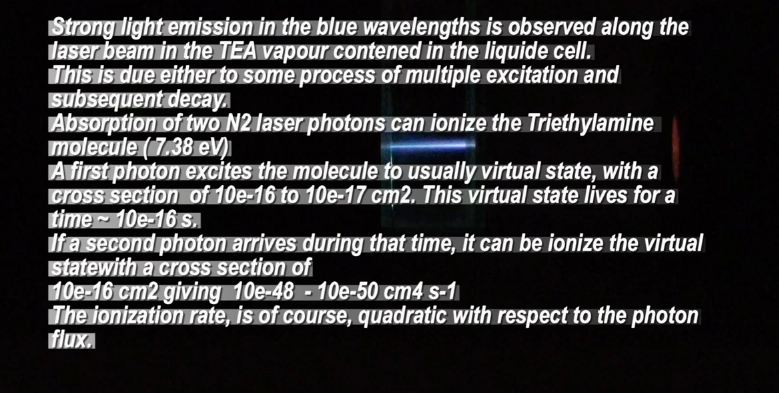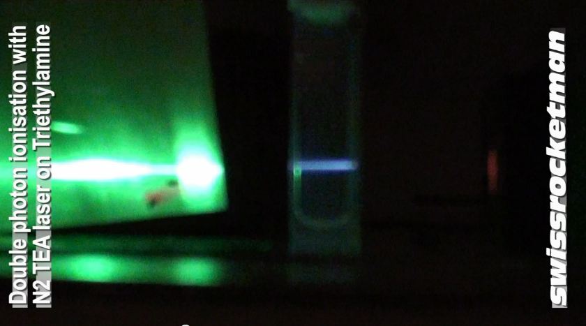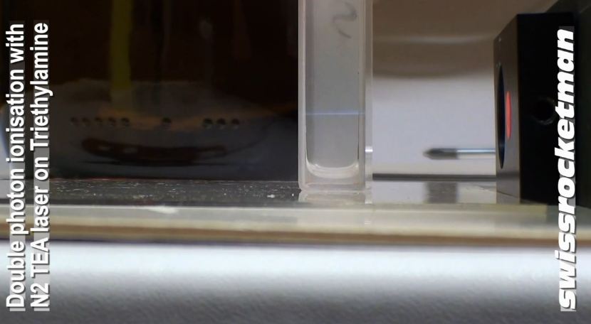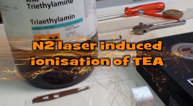 Au moyen d'un laser à azote MOPALITE® MOPA 600S focalisé dans le gaz de tri-éthylamine émettant des électrons.