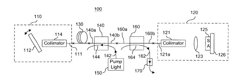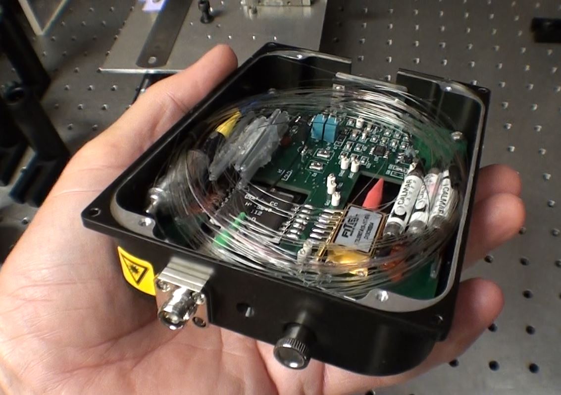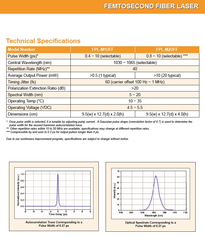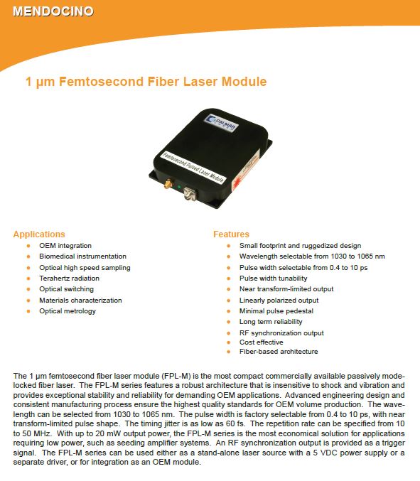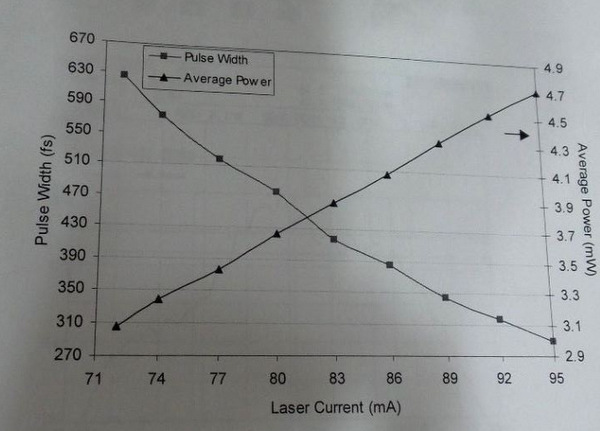 Ce laser femtoseconde à blocage de mode passif model CALMAR LASERS FPL-M2UFFLUM22, utilise un semi-conducteur à absorption saturable SESAM (miroir 125) et comme médium amplificateur une fibre dopée à l'Ytterbium(130) qui est pompée par une diode laser à 970nm.(150) Un des miroir du résonateur se compose réseau de diffraction holographique(112) et il permet de changer la fréquence de sortie des pulses lasers entre 1030 et 1065 nm. Ce module est une architecture insensible aux vibrations et aux chocs et il présente une stabilité exceptionnelle et une fiabilité maximum et ceci sans aucun réglage ! La durée de pulse peut être précisé à la fabrication entre 500fs et 5ps selon l'architecture de la fibre (longueur de celle-ci). Ce laser va nous permettre de réalisé l'expérience de la mesure des pulses par autocorrélation optique interférométrique multi-coups, utilisant une photodiode GaP en régime d'absorption à 2 photons. http://www.swissrocketman.fr/realisation-autocorelateur,fr,8,127.cfm