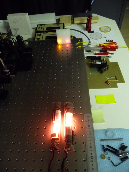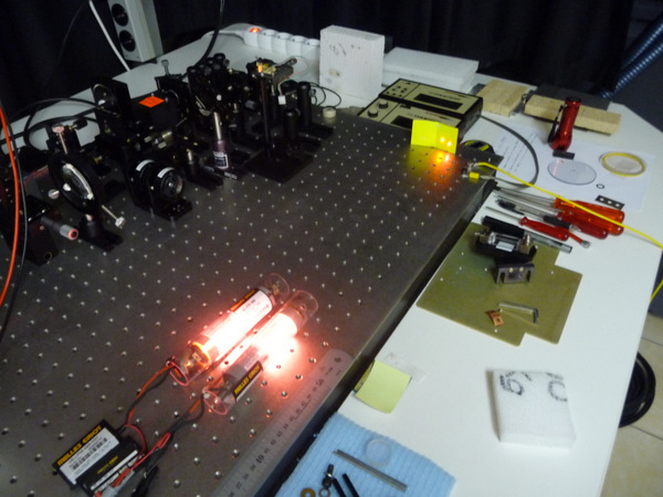 Deux petit laser HeNe de MELLS GRIOT un émettant à 632.8nm (rouge) et l'autre à 594.1 nm (jaune)