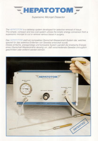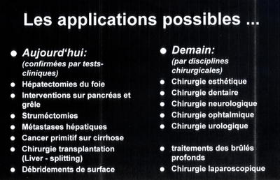 Ce développement est issue du micro-jet supersonique utilisé en angioplastie transluminal percutanée pour percer les sténoses avant le passage d'un ballonnet de dilatation