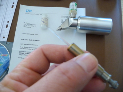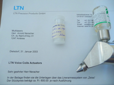 Voici quelques photos de mon prototype et des courriers de l'époque aux sociétés pour acheter l'actuateur "voice coil"