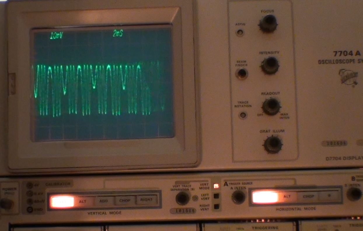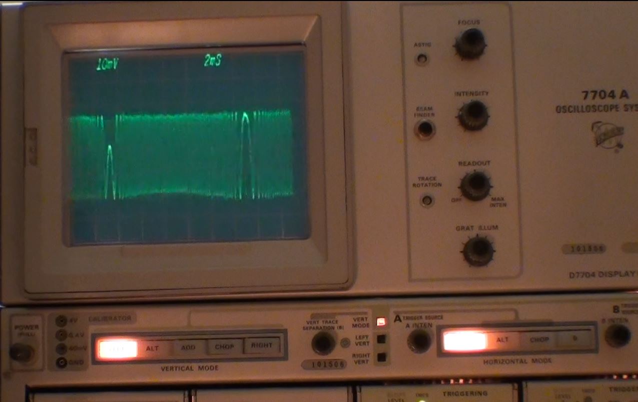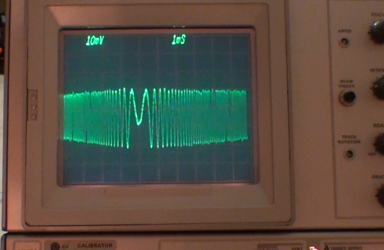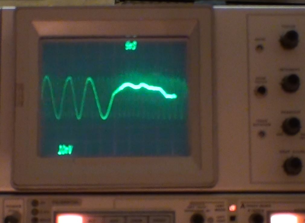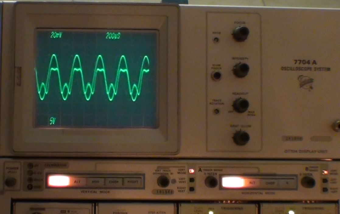 Analyse du signal: Le générateur donne un signal sinusoïdal de 20 volts à 1250 Hz. Le PZT bimorphe suit le signal avec un léger déphasage de l'ordre de 30°. Le signal d'interférence reçu sur la photodiode est de 50mV. Chaque sinusoïde correspond à une longueur d'onde du laser source ici un laser HeNe soit 623,8nm. On compte 13 sinusoïdes sur une période soit une distance 8.2 microns ! J'ai également fait des tests avec un signal triangulaire et carré. Le problème majeur avec les bimorphes est le résonance ce qui fait que pour certaines fréquences ils ne sont pas adaptés.