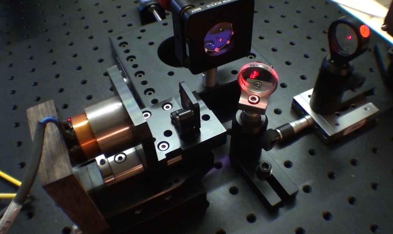 Un interféromètre de MICHELSON qui permet de faire interférer l'onde à analyser avec l'onde de référence pour cela on déplace un des miroirs d'une distance Lm1 qui dépend de la durée du pulse laser à analyser. Cette distance est de 150 microns pour un pulse de 1ps et de 15cm pour un pulse de 1ns (1000ps) Pour faire ces mesures j'ai réalisé un banc de mesure sur une table optique mobile permettant de la déplacer à coté du laser à mesurer.