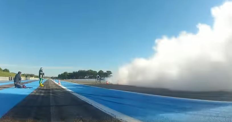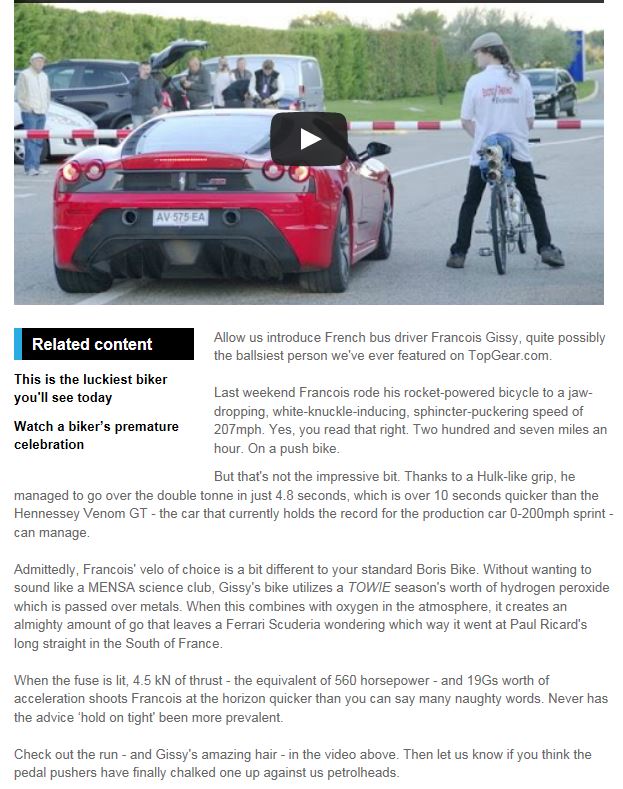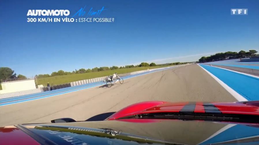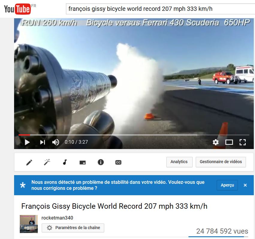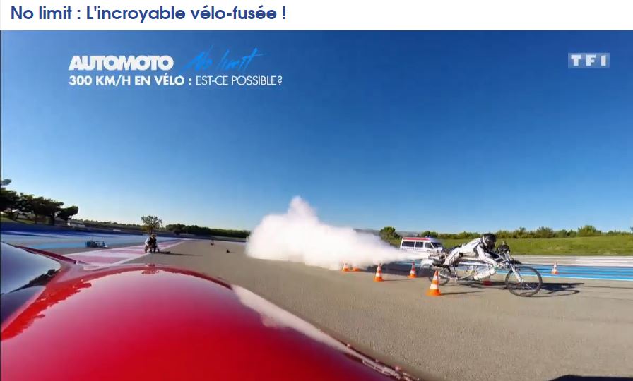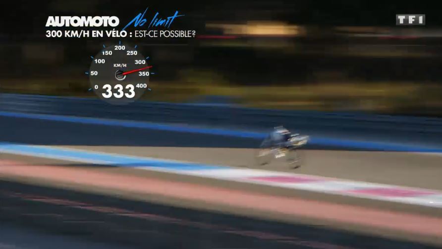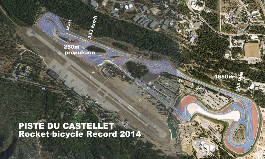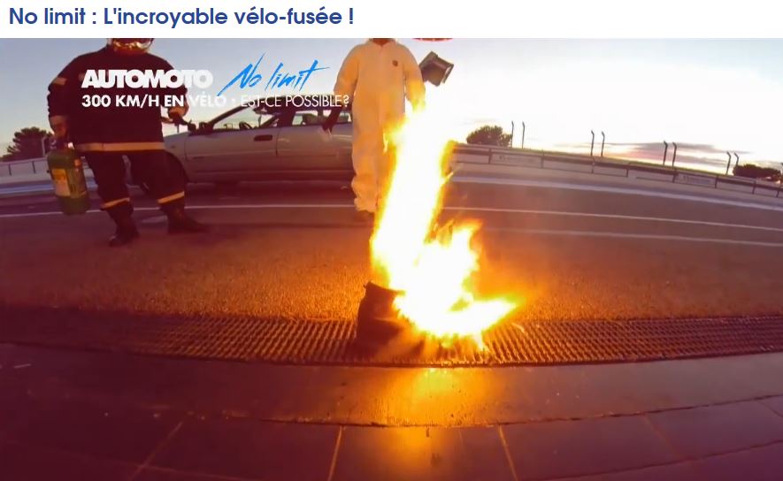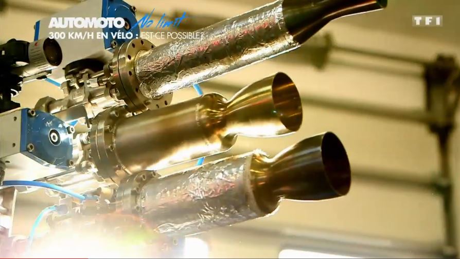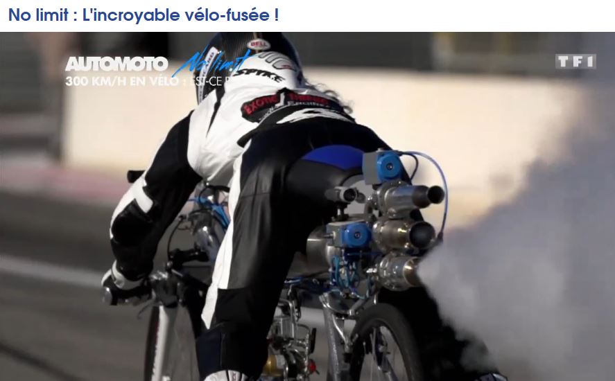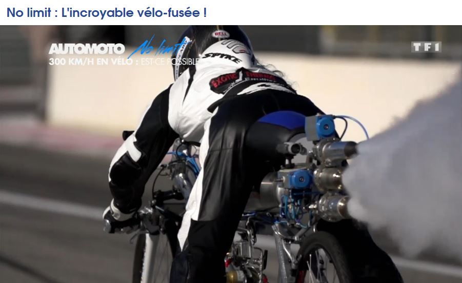 an incredible speed of 333 km/h on the rocket-propelled bicycle designed by his