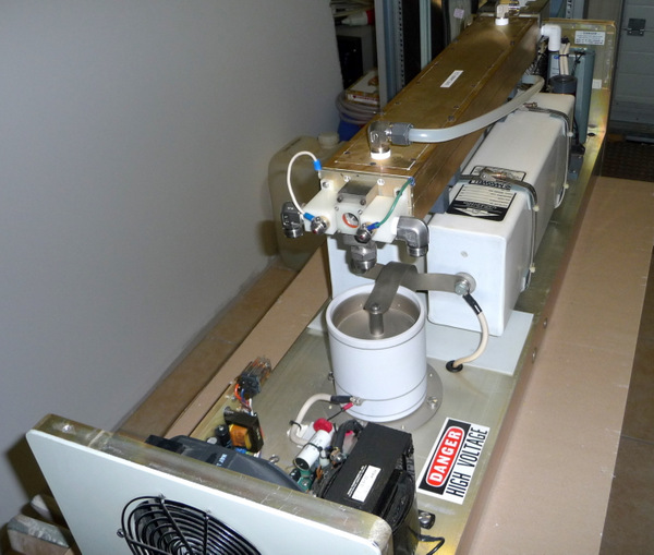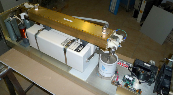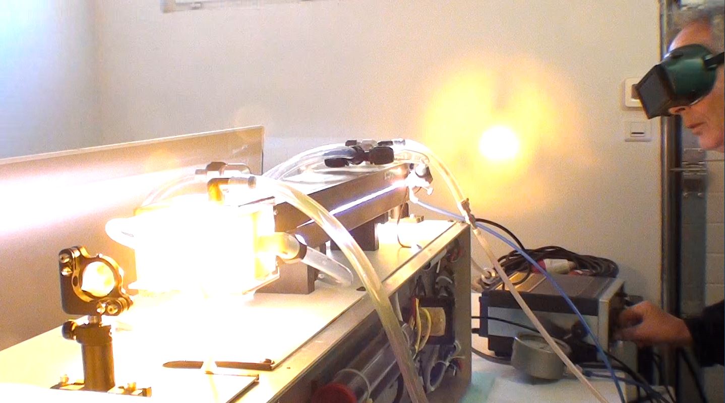 Reconstruction de ce laser à colorant Rhodamine 6G que j'ai acheter sur Ebay USA en 1995 et qui est resté dans ma cave jusqu'à ce jour ou j'ai décidé de le réparer et le faire fonctionner. Ce laser est capable de sortir 2 Joules par pulse en 1 microseconde soit une puissance instantanée de 2MW avec un taux de répétition de 10 pulses par seconde soit une puissance moyenne de 20W. Il se compose de 2 tubes flashs linéaires de 7 mm diamètre intérieur et 600 mm de long. Ces tubes flashs et la cavité difusante en MgO sont refroidit par eau dé-ionisée. Le tube de quartz ou circule le colorant fait 10 mm de diamètre intérieur et 600 mm de long. Le colorant circule au moyen d'une pompe centrifuge de 300W.