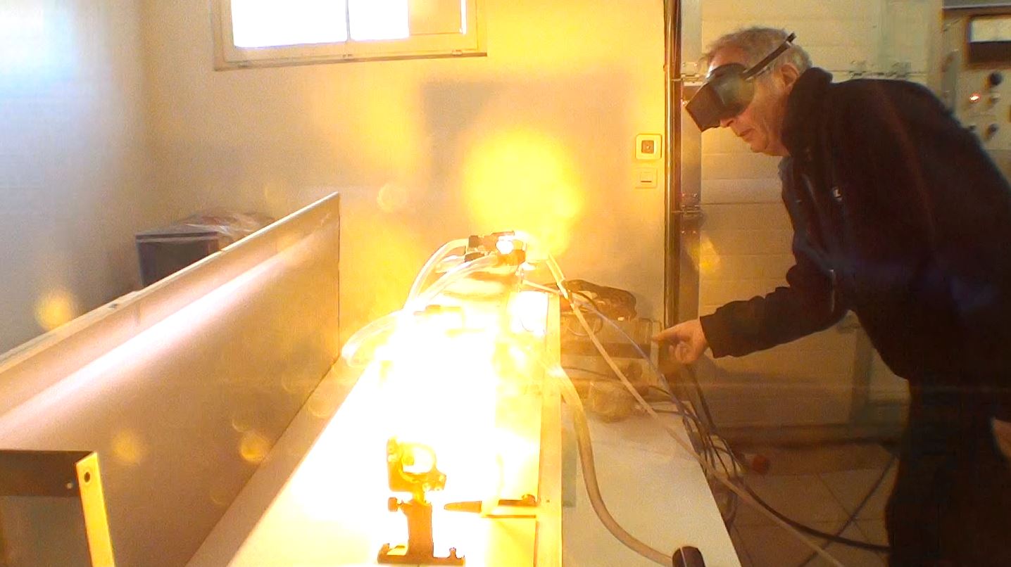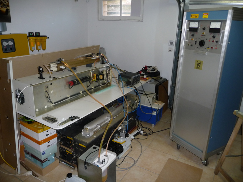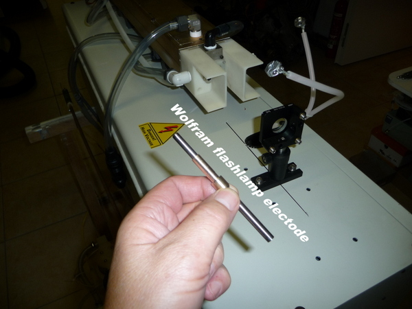 Les 2 tubes flashs sont cassés il s'agit de refaire ces 2 tubes en utilisant des tubes de quartz de 7/10 mm et 675mm de long avec des électrodes en laiton munie d'un embout en tungstène. Une électrode sur chaque tube est munie d'une entrée de gaz permettant de tiré au vide et de travailleren régime ablatif (28J/cm3)