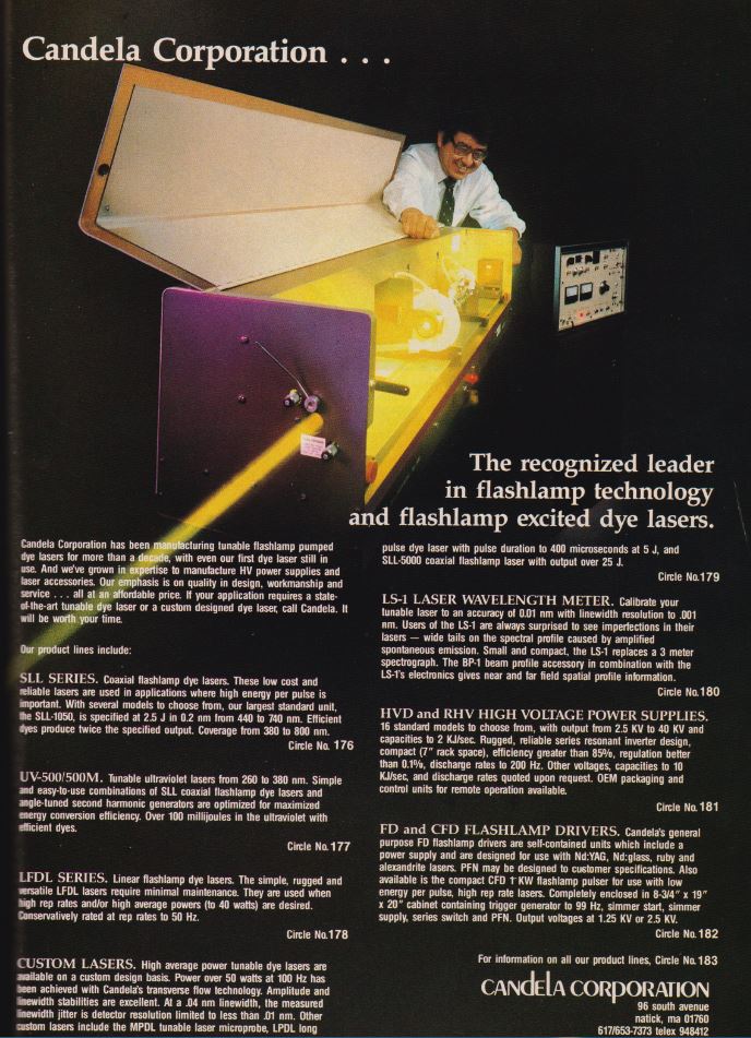Laser à colorant pompé par tube flash microseconde CANDELA 2 Joules