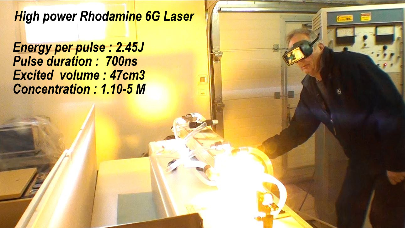 La prochaine étape consiste à faire fonctionner le laser avec une alimentation à "charge par résonance" de manière a fonctionner à une fréquence de répétition de 8 pulses par seconde. Autres tests réaliser des solutions decolorant avec des concentrations de 1.10-6 à 1.10-8 Mol. Voici une liste de colorants "LAMBDACHROME"