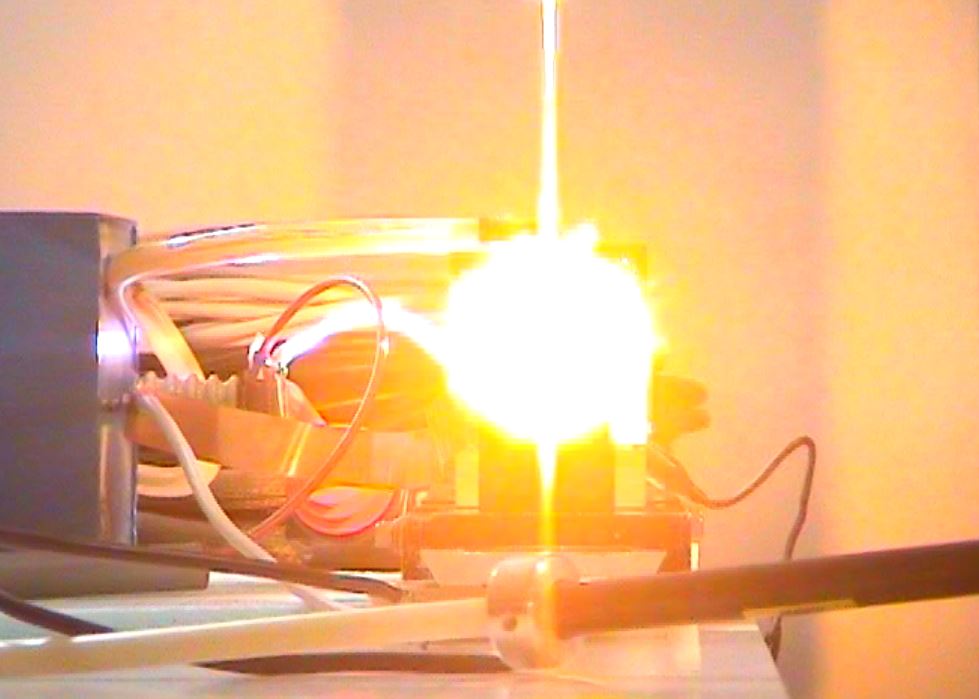 La deuxième étape consiste à mettre un éclateur en série de manière à augmenter la tension de charge donc de décharge.