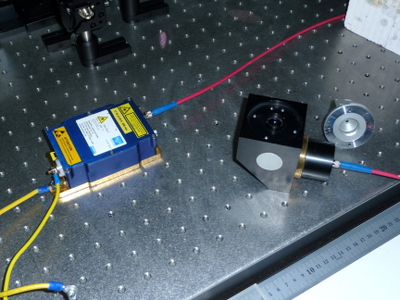 miroirs sont réglable en X et Y. Le KTP fait 3 X 3 X 5 mm et est traîté AR 532