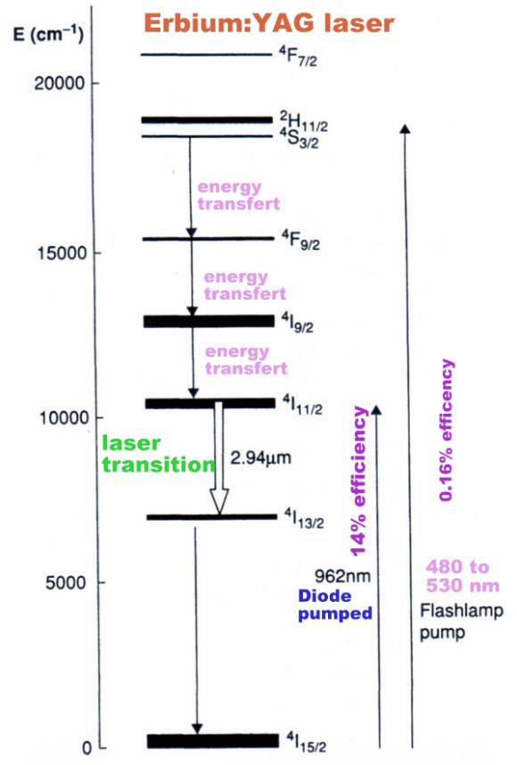 C'est un système à 4 niveaux. Ce laser sort 1000 mJ avec 800J de pompe flash en 250 microsecondes.