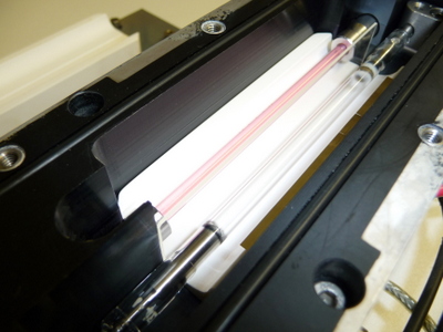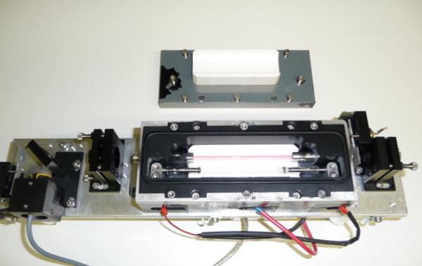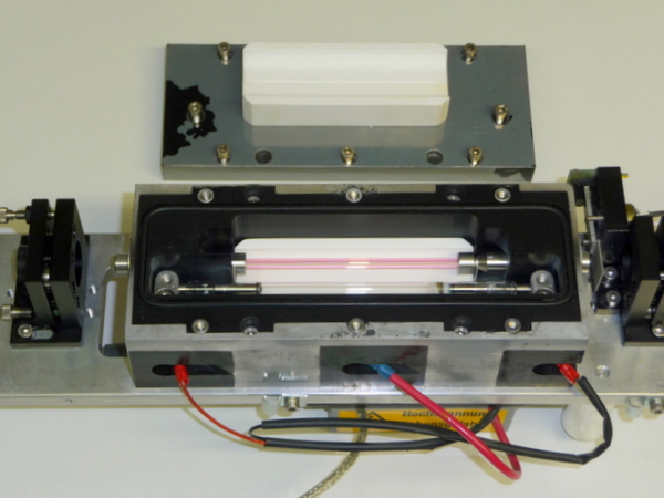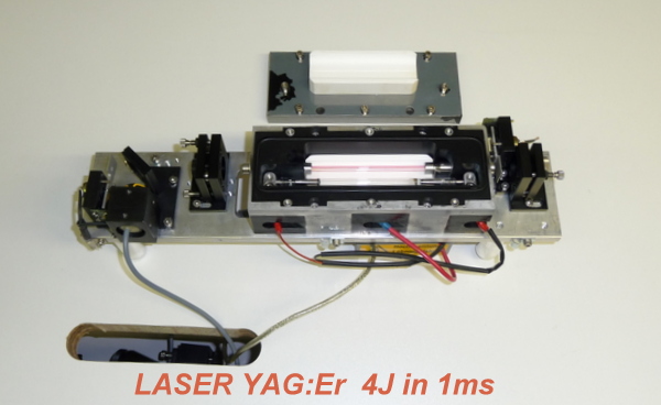 Le barreau YAG:Er est dopé à 50% en ions erbium, le pompage peut être réalisé avec un tube flash (0.16% rendement) ou par diode laser QCW avec un rendement de 14%.