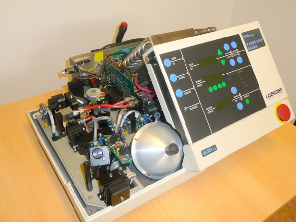 Le LaserScope est un laser à colorant pompé par un laser à ion d'Argon ou un laser DPSS YAG continu doublé en fréquence. Il est utilisé pour le traîtement de tumeurs cancéreuse car il émet à 630nm.