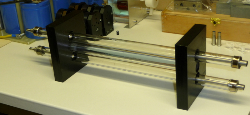 Laser verre au néodyme pompé par 2 tubes flash linéaires de 8000 J chacun. Le réflecteur je vais le réaliser avec 2 tubes de quartz coaxiaux qui seront remplis de sulfate de baryum ou d'oxyde de magnésium.