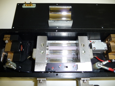 Dans le résonateur se trouve un cellule de pockel permettant d'obtenir des impulsions géante de 10-14 MW.