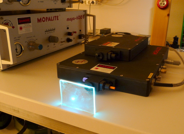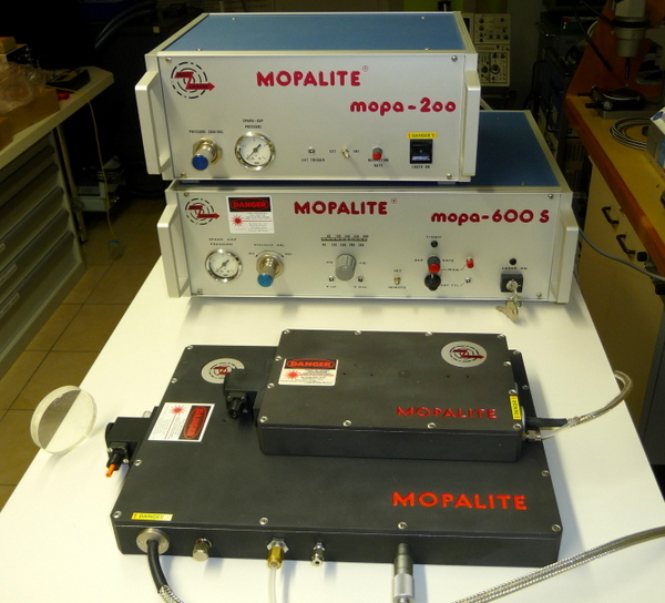 TEA nitrogen laser. The extremely high brightness of MOPALITE laser is achieved by a design