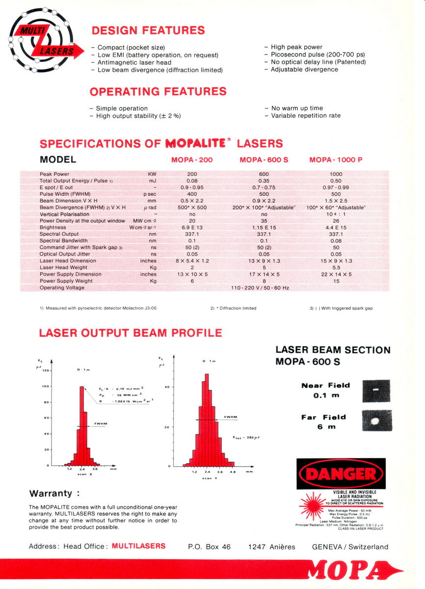 During four years it develops and markets nitrogen lasers producing diffraction limited beam specially designed