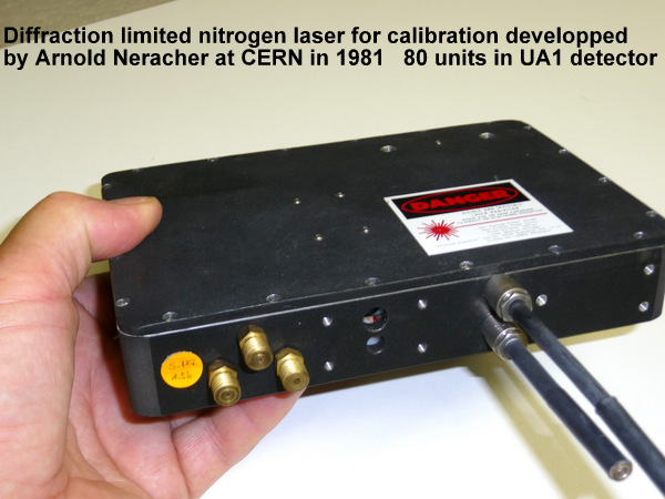 Arnold à développé pour la calibration du détecteur de particule UA1 du LEP (CERN) ces mini lasers à azote. Ces