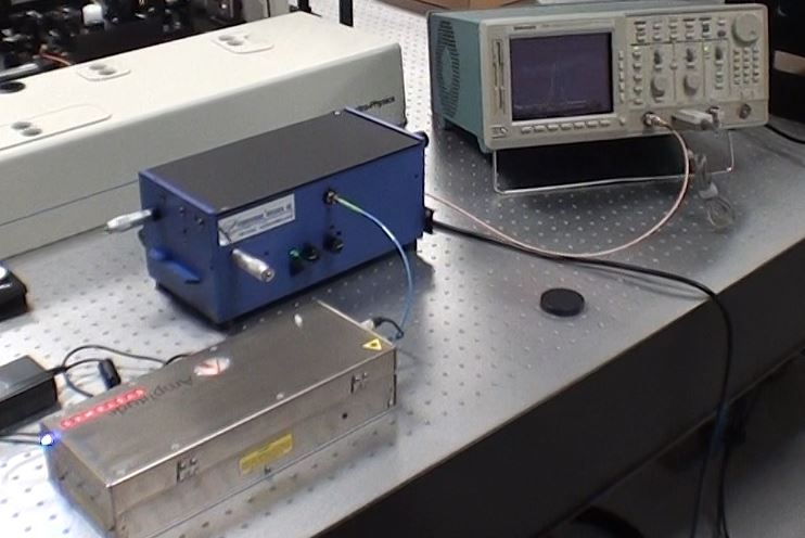 Mesure de la durée des pulses d'un laser fibré de chez AMPLITUDE SYSTEMS avec un auto corrélateur FEMTOCHROME FR 103XL.