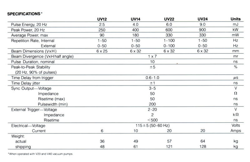 Le model UV24 est le plus grand et le plus puissant. La longueur des électrodes de décharges est de 1200mm la distance entre électrodes de 32mm ce qui produit un spot de section rectangulaire de 6 x 32mm avec une divergence de 1 x 7mrad