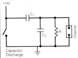 Il se compose d'une ligne de décharge du type transfert de charge ou les capacités C1 sont chargées à +20 kV puis déchargées par un thyratron à hydrogène dans les capacités C2 aux bornes des électrodes de décharges cela permettant une fréquence de répétition de 50 Hz.