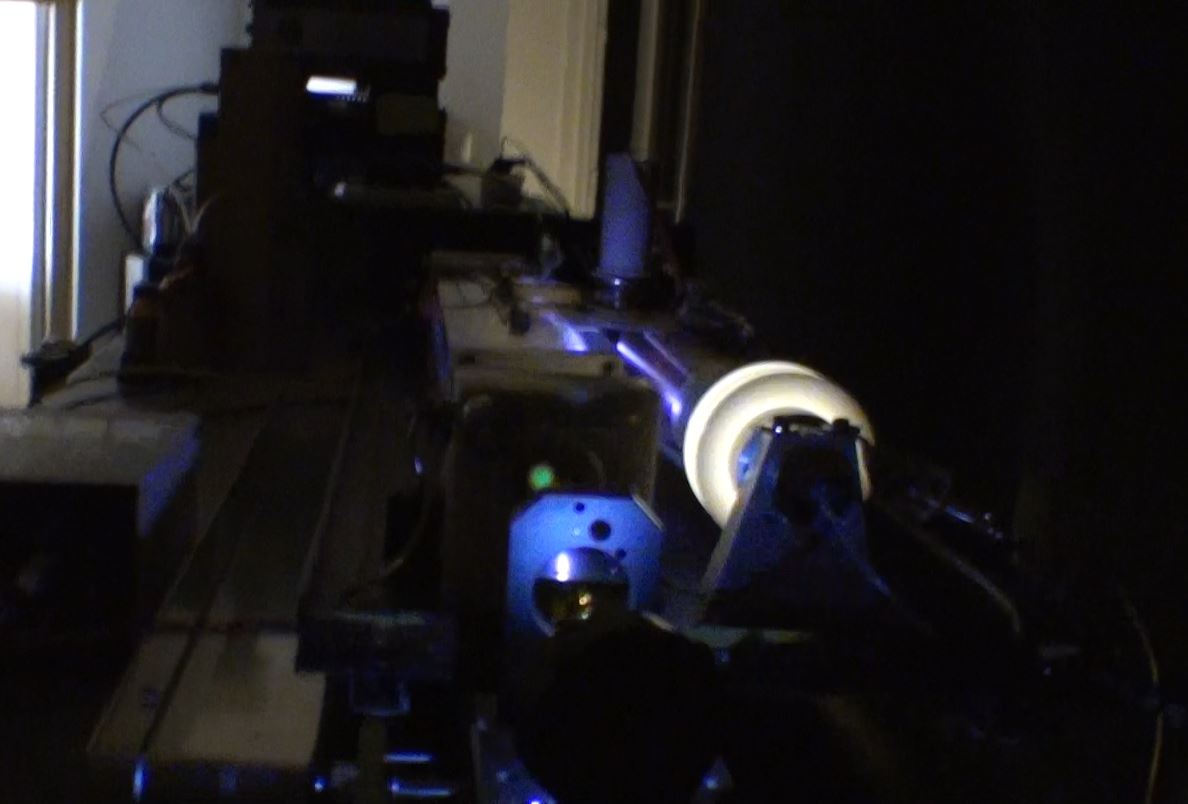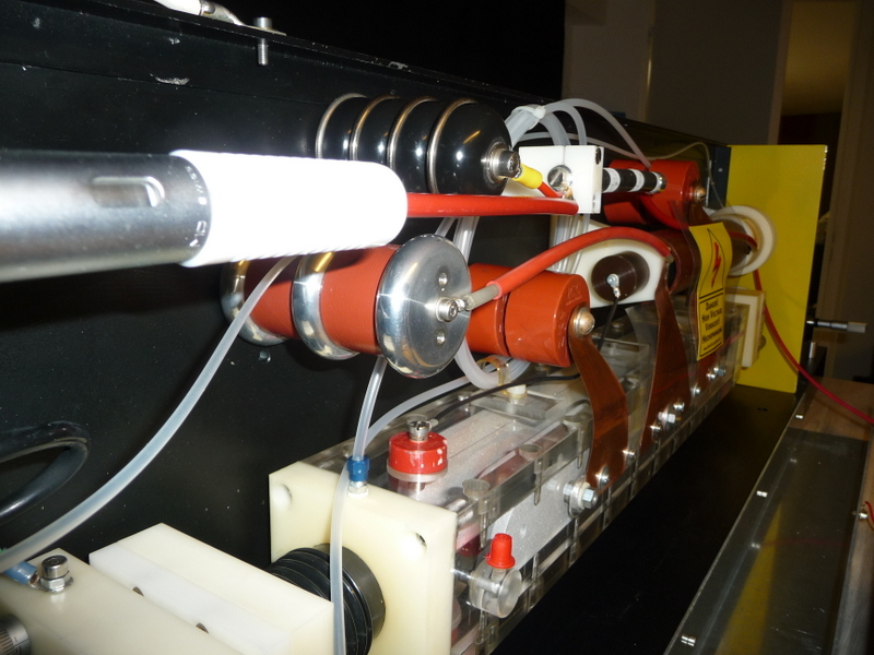 Voici une photo de la décharge entre les 2 électrodes de Rogowski