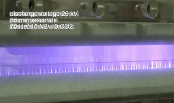 Effet laser due à une décharge homogène du mélange de gaz visualisé par le claquage diélectrique de l'air !