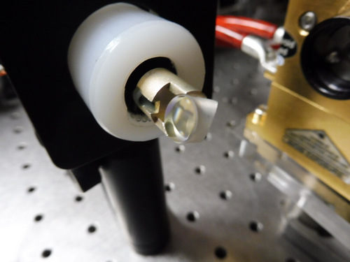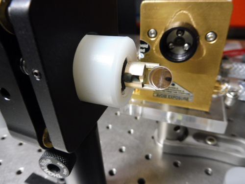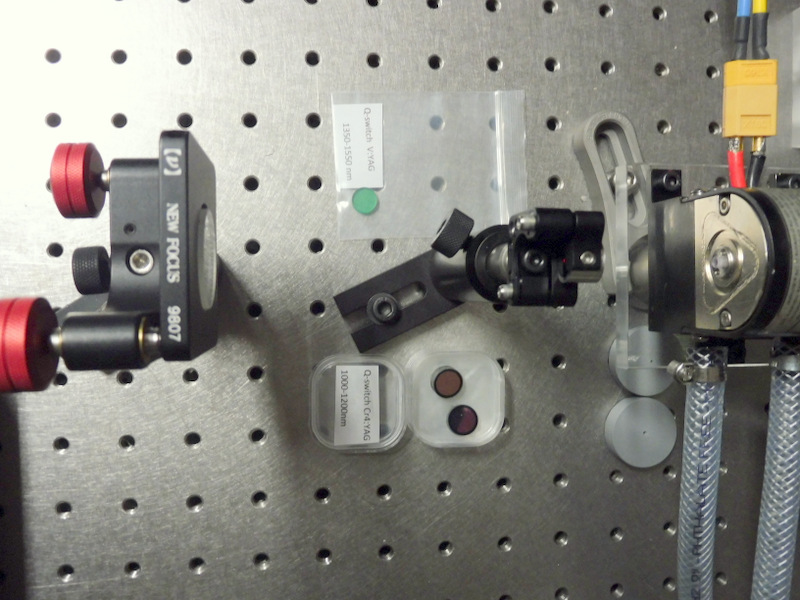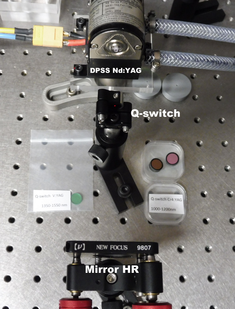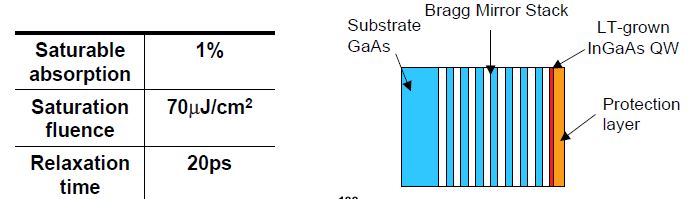 MONTAGE Q-switch passif avec SAM (Saturable Absorber Mirroir). Le SAM est un miroir non-linéaire dont la réflectivité augmente avec l'énergie du pulse incident. Il permet de faire du Q-switching et du mode locking sur des lasers continus.