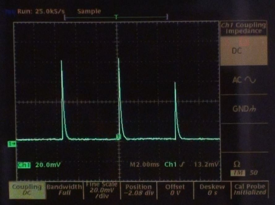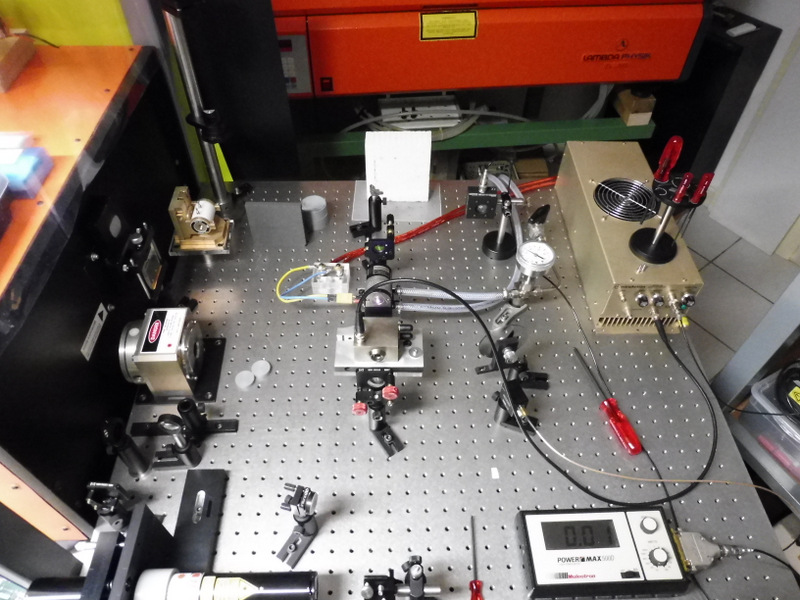 Durée des pulses 100 microsecondes Fréquence de répétition optimum 500 Hz L'intensité des pulses dépend de la fréquence de répétition et l'optimum pour une puissance de pompe de 25A est de 500Hz. Plus la puissance de pompe est élevée plus la fréquence de répétition augmente